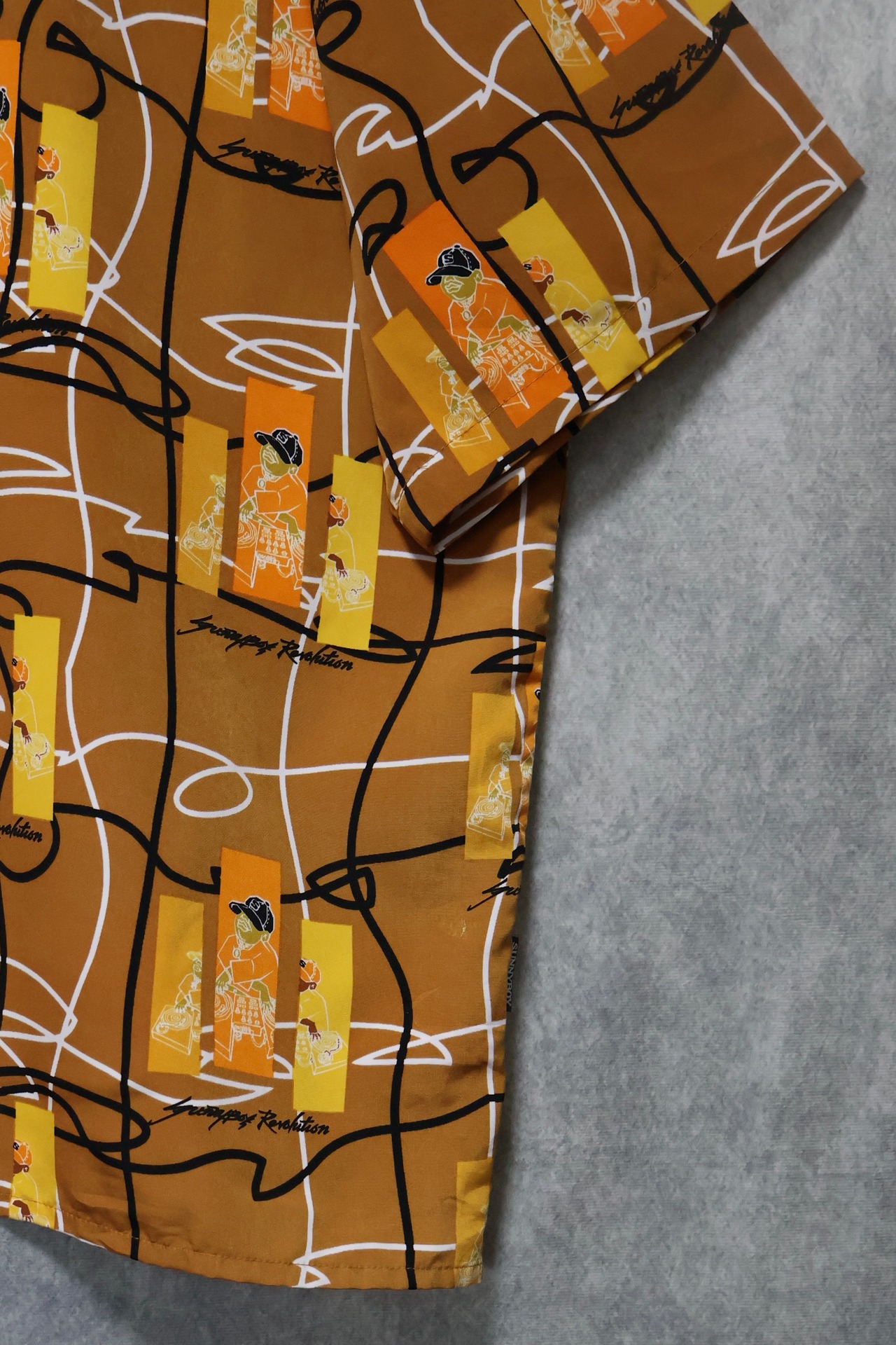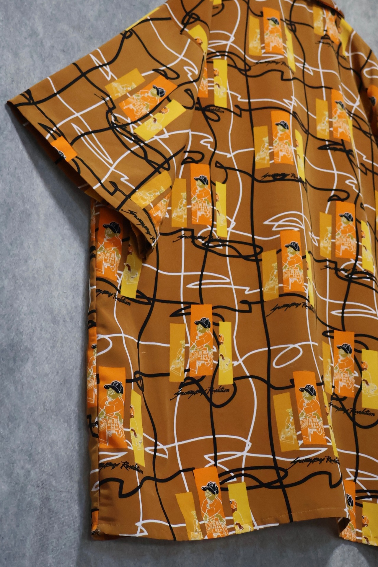 ブラウンをベースにしたレトロチックで温かみのあるボディに、DJプレイをするB-BOYを全体に載せたHIPHOPカルチャーを感じられる半袖シャツ✨